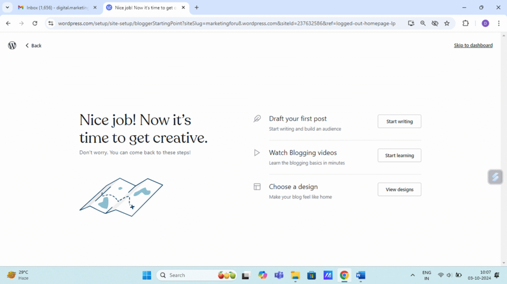 Step 6. Either draft your first post OR skip to dashboard
