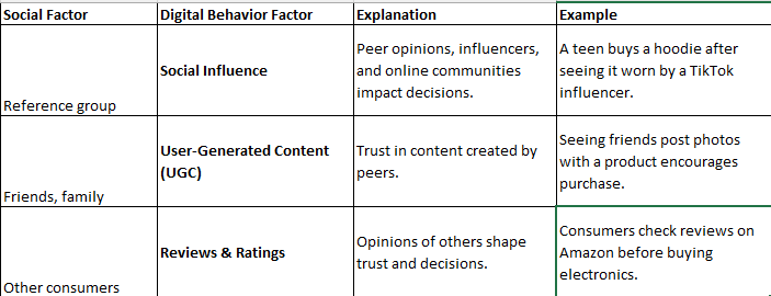Digital consumer behavior is complex and dynamic, influenced by both individual and group factors. While personal and psychological factors shape the internal decision-making process, social and cultural factors influence external perceptions and trends.