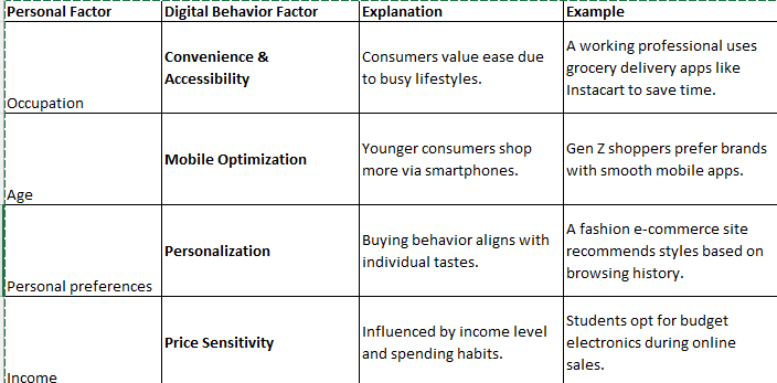 The buying behavior of digital consumers is shaped by a combination of personal, social, cultural and psychological. These factors determine how consumers discover, evaluate, and ultimately decide to purchase products or services online.
